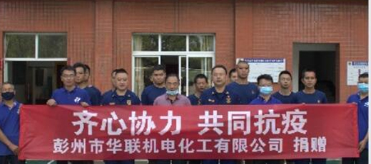 中國消防救授“齊心協力共同搞疫”彭州市華聯機電化工公司損贈活動